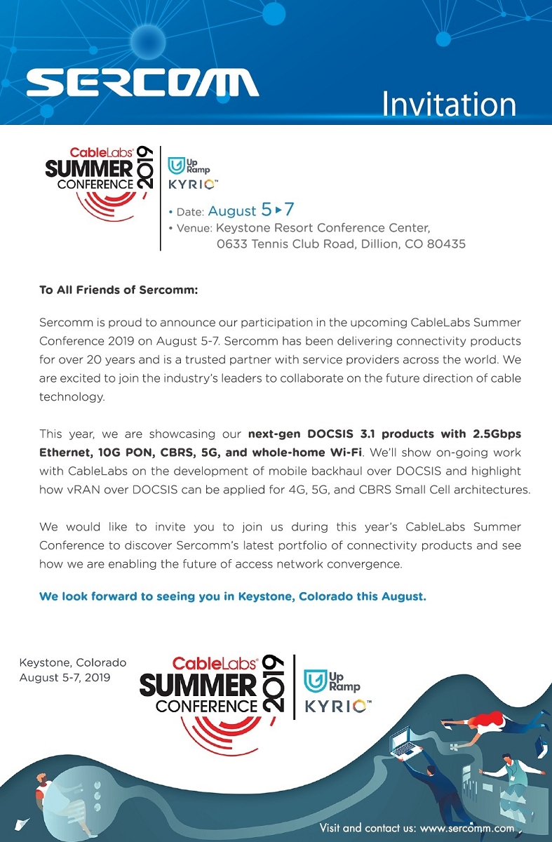 CableLabs Summer Conference 2019, August 5 ~ 7, 2019