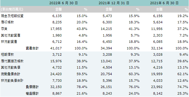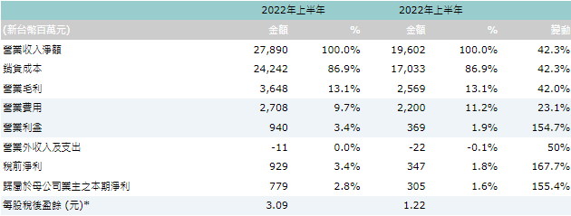 * EPS 以普通股加權平均股數計算:2022年上半年為252,390仟股,2021年上半年為250,112仟股