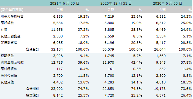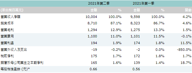 * EPS 以普通股加權平均股數計算:2021年第二季為250,112仟股,2021年第一季為249,055仟股