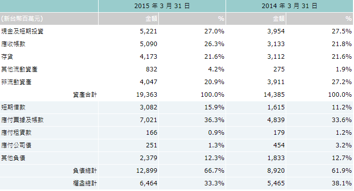 * EPS 以普通股加權平均股數計算:2015年第一季為230,278仟股,2014年第一季為219,367仟股