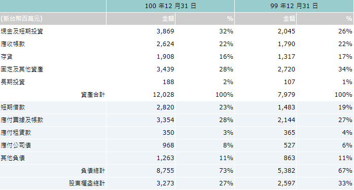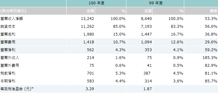 * EPS 以加權平均流通股數計算:100 年度為177,410 仟股,99 年度為168,433 仟股