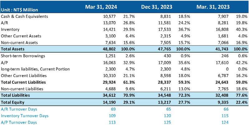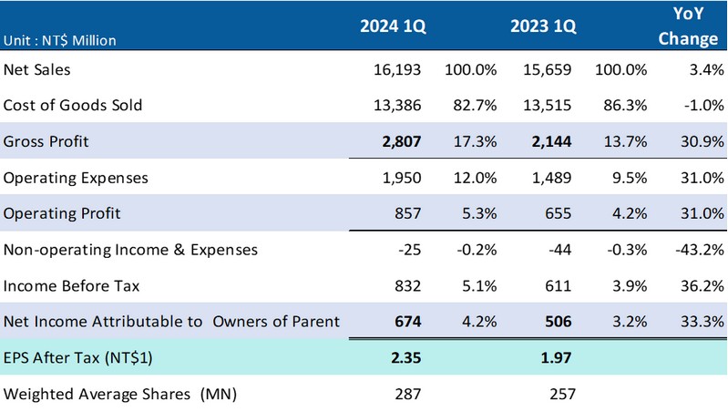 * EPS以普通股加權平均股數計算:2024年第一季為286,665仟股,2023年第一季為256,589仟股