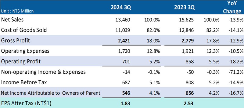 * EPS以普通股加權平均股數計算:2024年前三季為293,355仟股,2023年前三季為257,822仟股