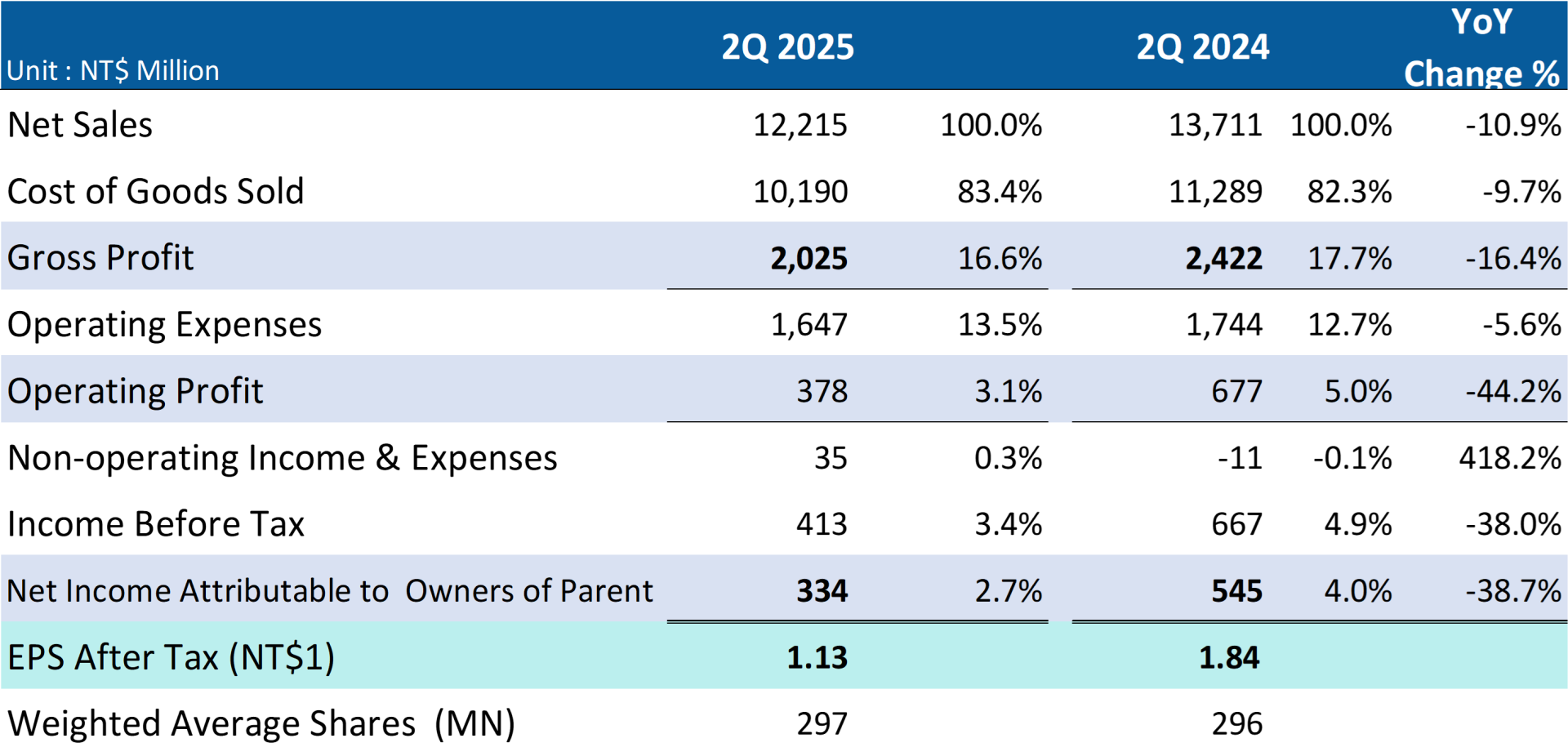 * EPS以普通股加權平均股數計算:2025年第二季為296,843仟股,2024年第二季為295,565仟股