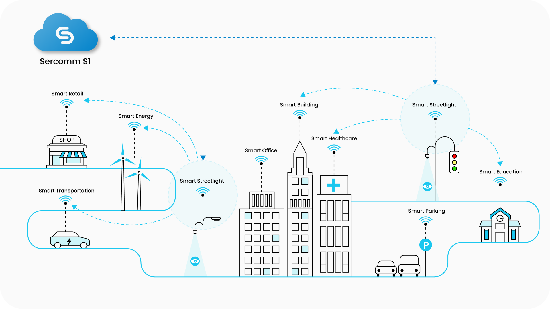 Sercomm's solution seamlessly integrates smart devices into urban infrastructure, transforming street lights into multifunctional assets. This enables the provision of various services beyond traditional illumination, enhancing enterprise efficiency and security.